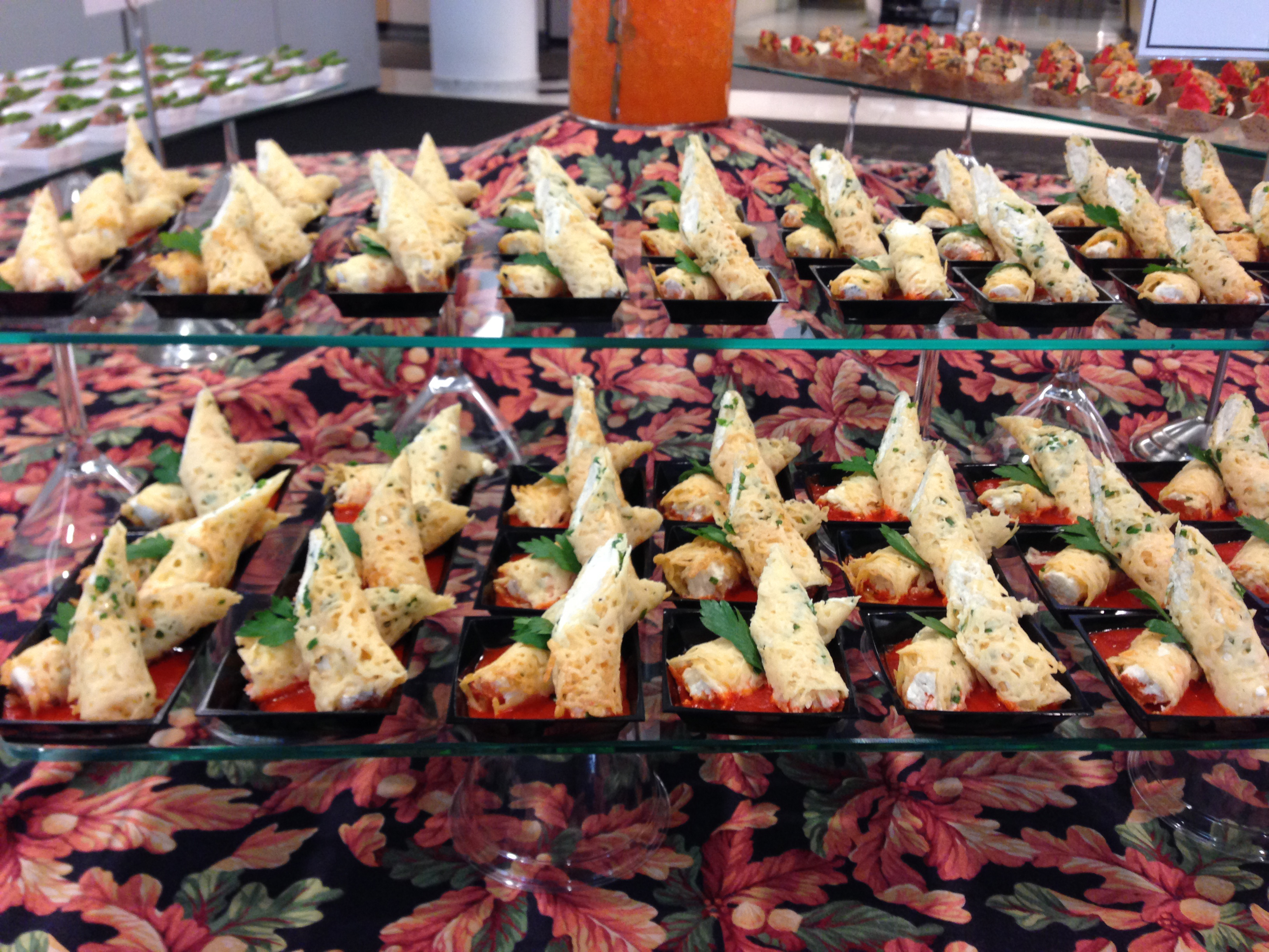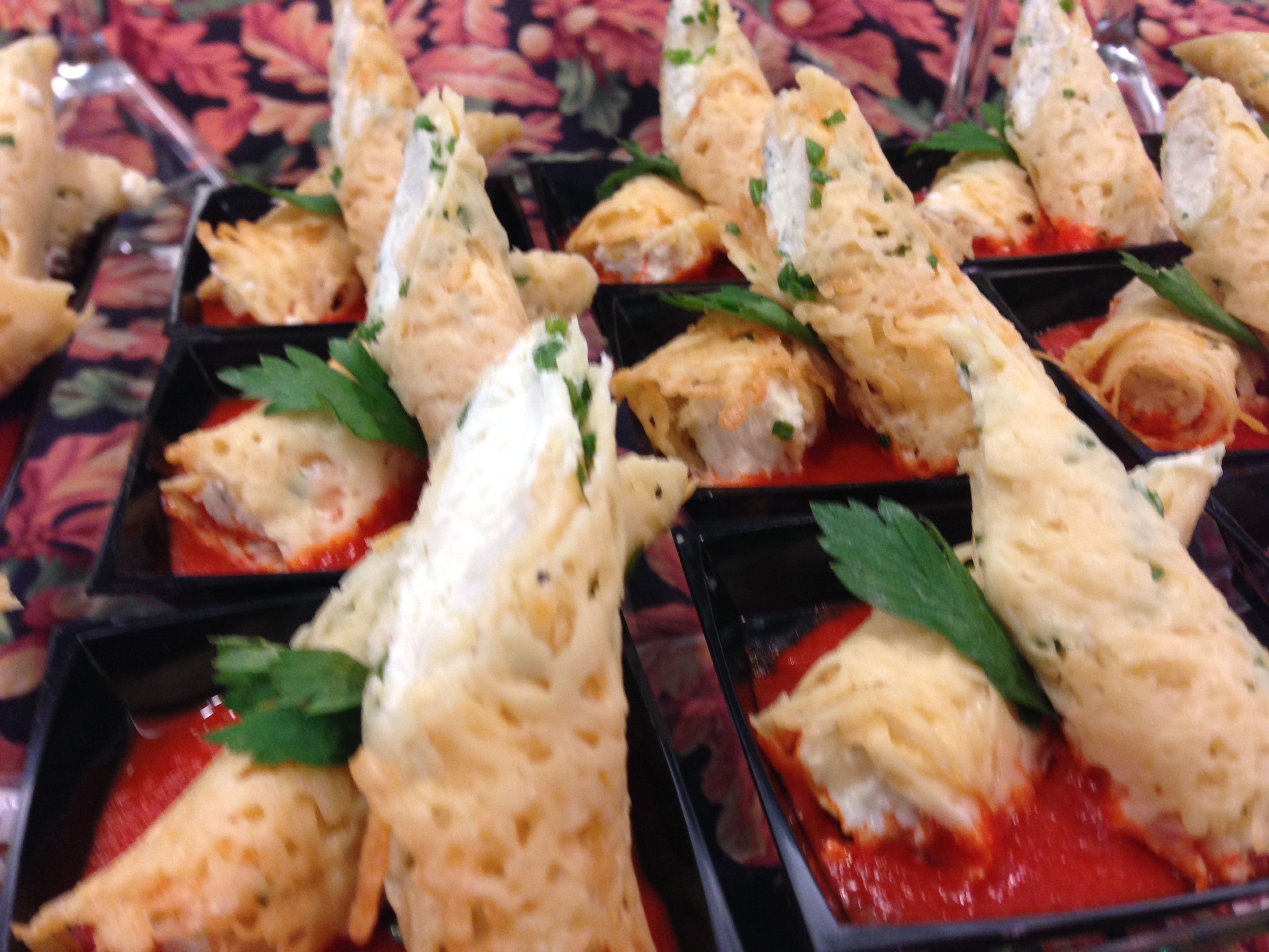 Crab Filled Asiago Cannoli with Roasted Red Pepper Coulis