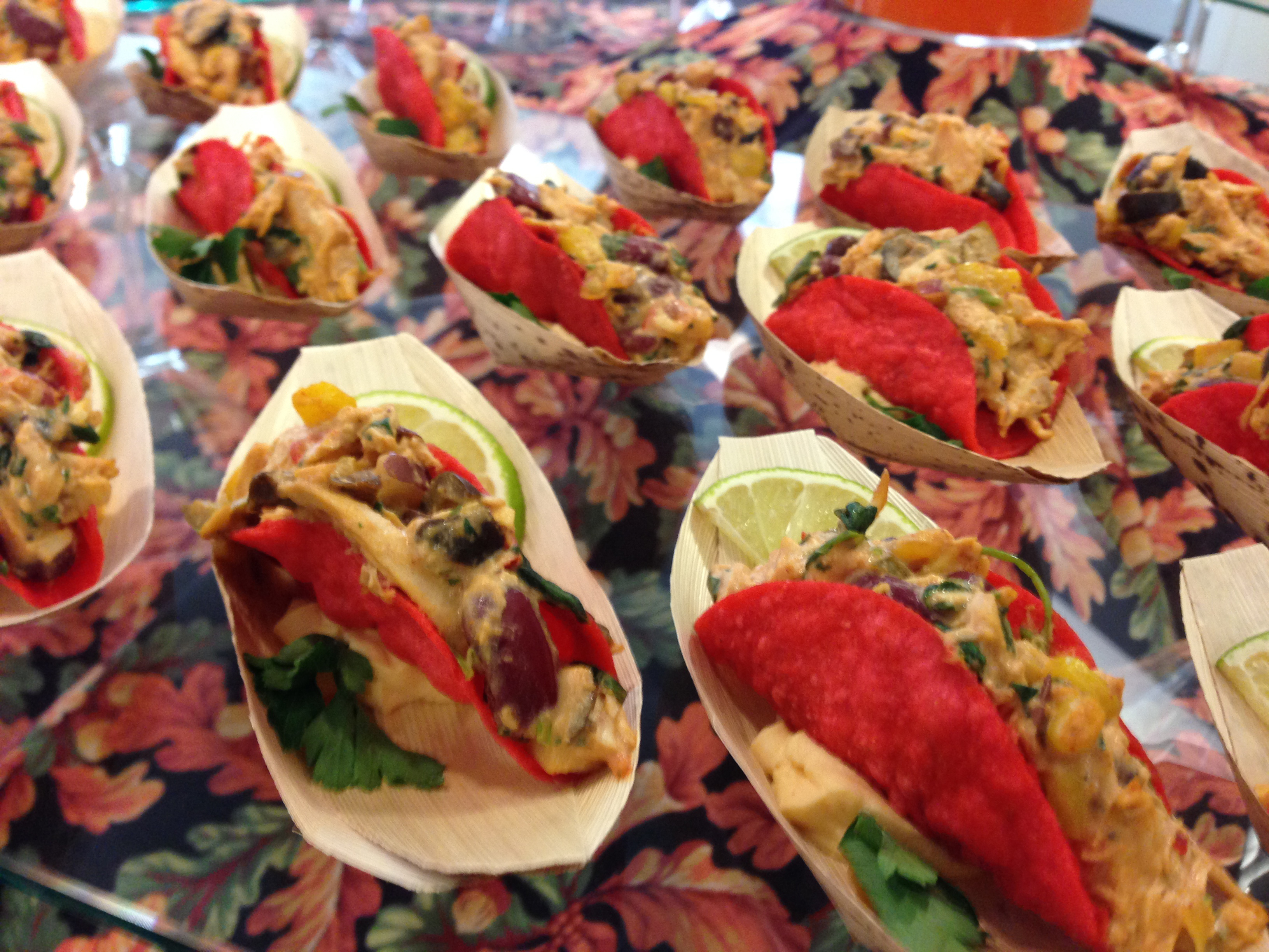 Southwest Chicken Salad Mini Tacos in Bamboo Boat