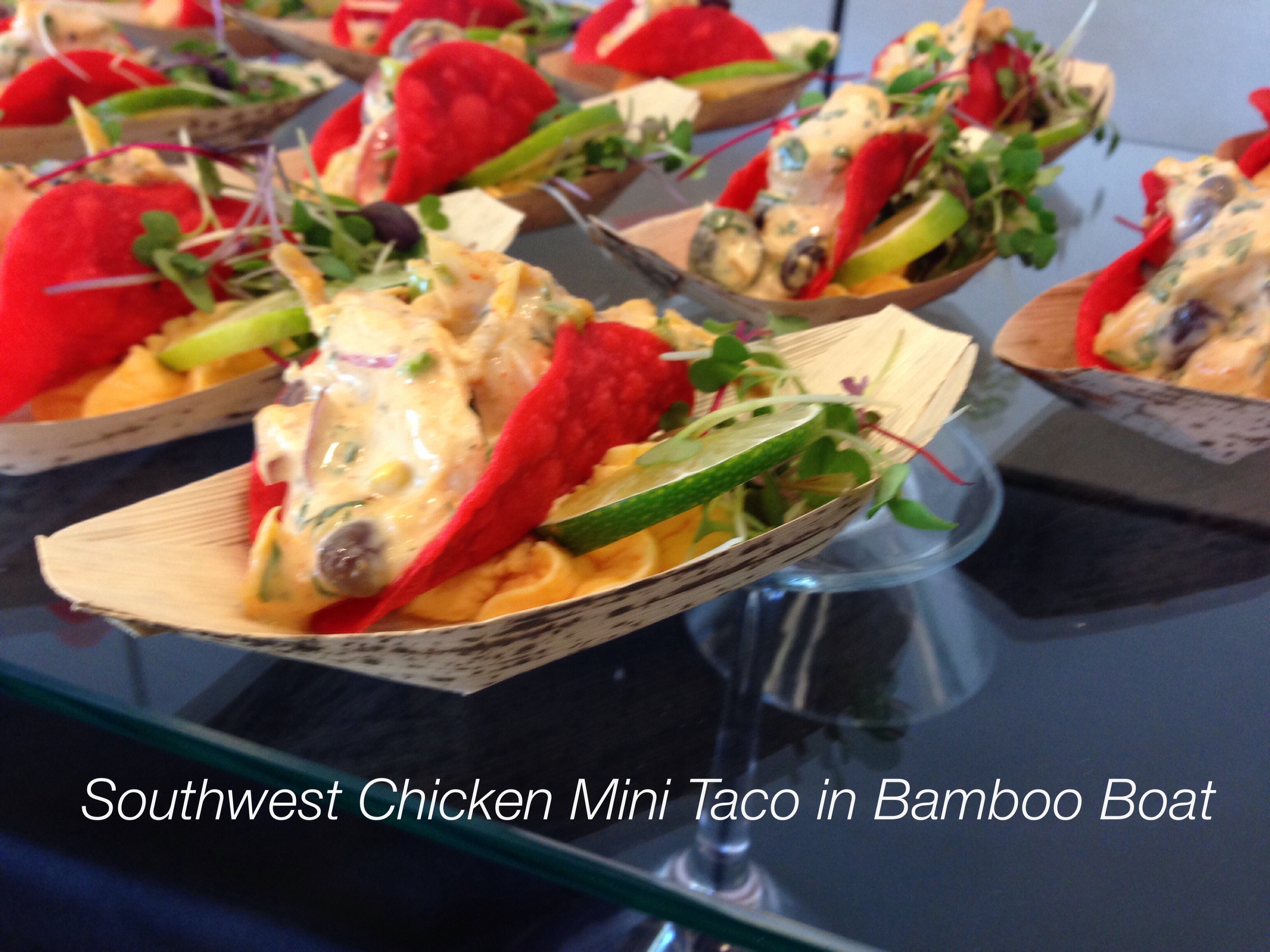 Petite Southwestern Chicken Taco’s in a Bamboo Boat